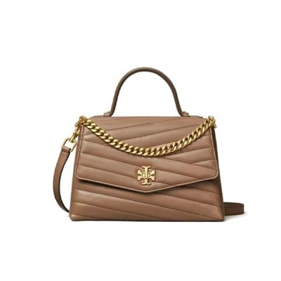 Tory Burch TB Kira Chevron 羊皮鏈條雙肩帶單肩斜挎手提包 中號 女款 褐色