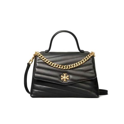 Tory Burch TB Kira Chevron 羊皮雙肩帶單肩斜挎手提包 中號 黑色