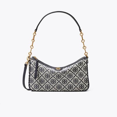 Tory Burch T Monogram 緹花單肩斜挎包 手提腋下包 海軍藍/榛子棕